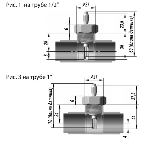 СПОСОБЫ УСТАНОВКИ ДАТЧИКОВ КТСПР 9514 НА ОБЪЕКТЕ ПОСРЕДСТВОМ СТАНДАРТНЫХ ТРОЙНИКОВ ПО ГОСТ 8949-75