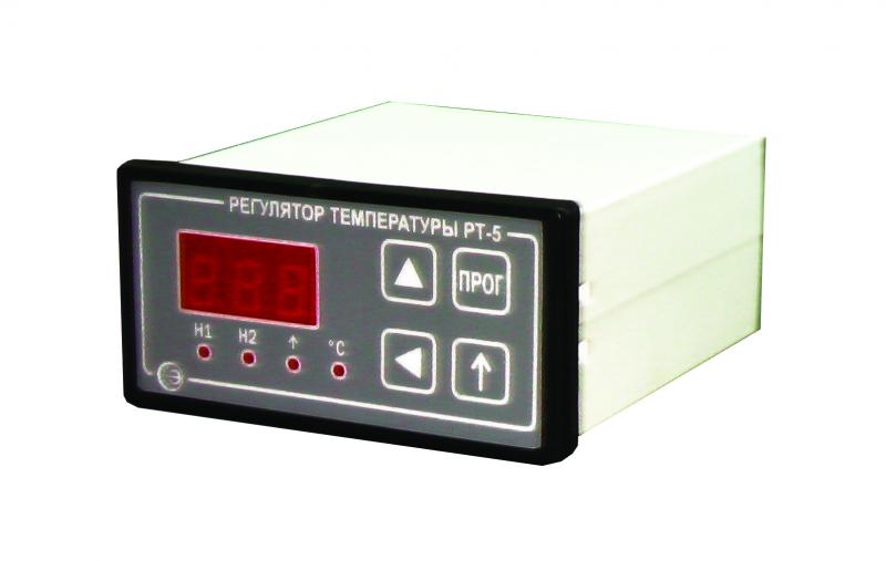 Микропроцессорный регулятор температуры РТ–5 щитового или настенного исполнения предназначен для измерения и регулирования температуры с функцией таймера, а также физических величин, первичные преобразователи которых имеют унифицированный выходной сигнал.