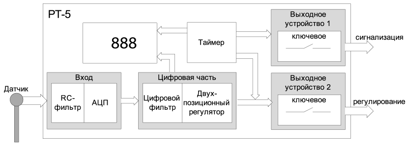 РТ–5 щитового или настенного исполнения предназначен для измерения и регулирования температуры с функцией таймера, а также физических величин, первичные преобразователи которых имеют унифицированный выходной сигнал.