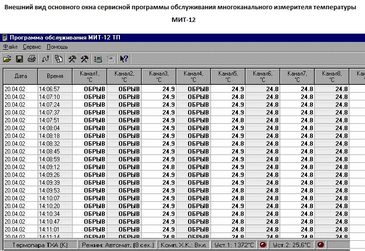 МИТ-12 - это щитовые приборы, предназначенные для проведения высокоточных измерений температуры при помощи термометров сопротивления (ТС) по ГОСТ Р 8.625-2006 или преобразователей термоэлектрических (термопар, ТП) по ГОСТ Р 8.585-2001 по 12-ти каналам, представления информации по каждому каналу на цифровом дисплее прибора и передачи измеренных значений на ЭВМ.