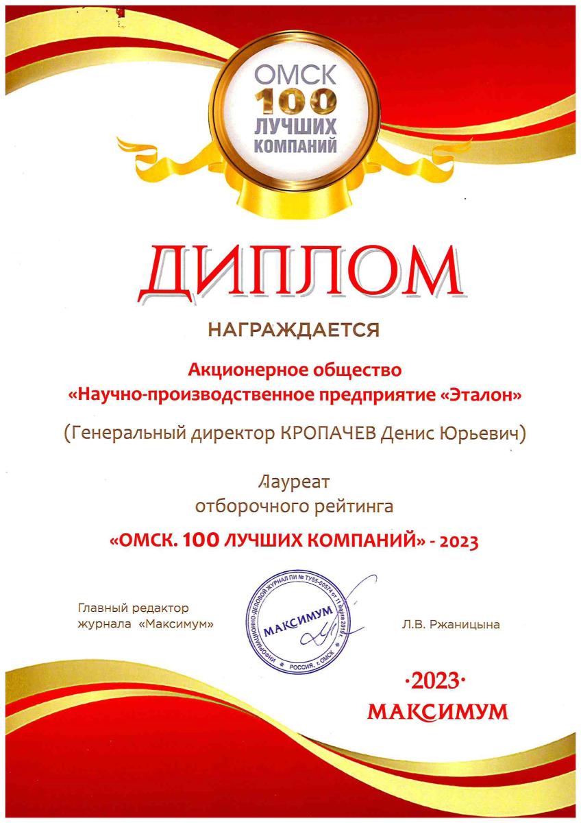 АО «НПП «Эталон» лауреат отборочного рейтинга «Омск.100 лучших компаний» - 2023