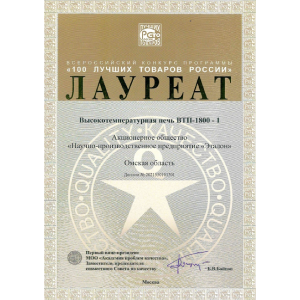 Церемония награждения состоялась 9 декабря в Омском центре стандартизации и метрологии, где высокую оценку получила Высокотемпературная печь ВТП-1800-1 предназначенная для нагрева рабочих и эталонных термоэлектрических преобразователей, ставшая лауреатом конкурса в двух номинациях - "Продукция производственно-технического назначения" и "Новинка".