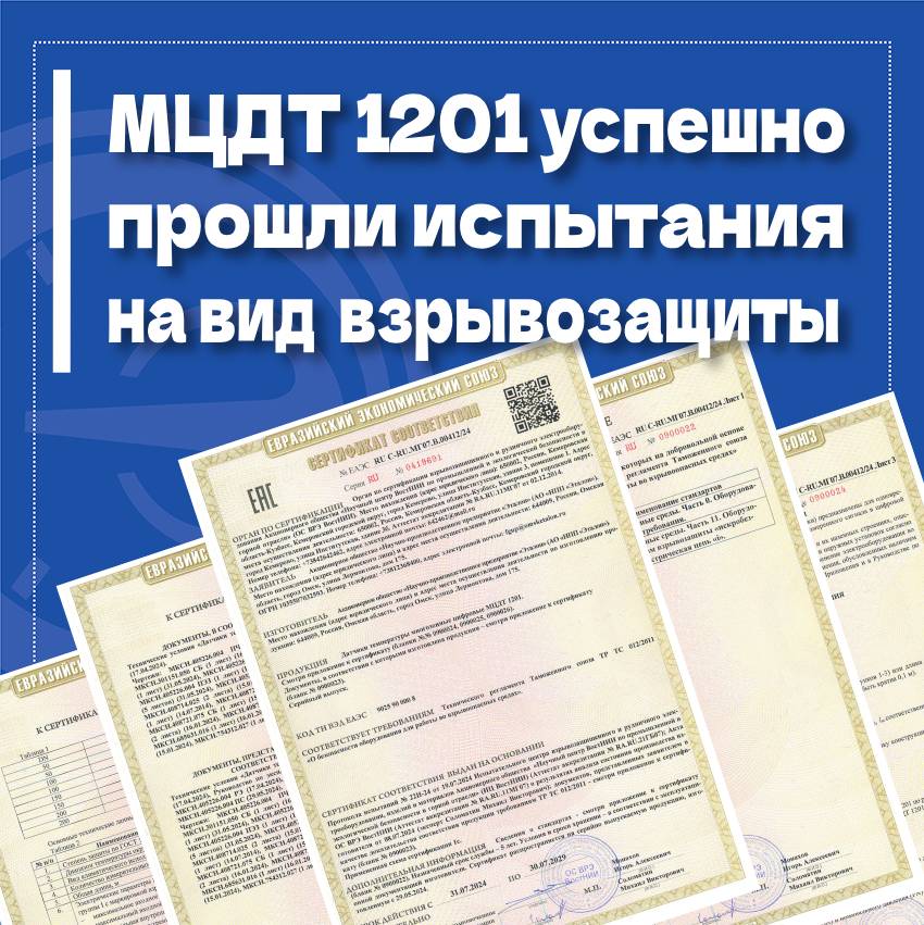 Данная аттестация стала важным шагом в обеспечении безопасного использования датчиков МЦДТ 1201 в потенциально взрывоопасных средах, таких как нефтехимическая, газовая и другие отрасли, где важен контроль температуры в условиях повышенной опасности.