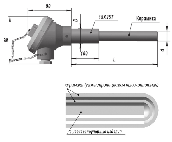 для измерения температуры в окислительных и нейтральных газовых средах, не содержащих веществ, вступающих во взаимодействие с материалами термопары.