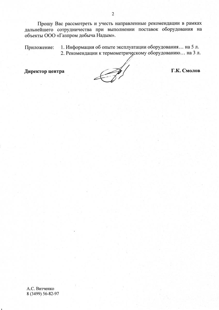 В приложении 1 к настоящему письму представлена информация об опыте эксплуатации оборудования АО НПП «Эталон»