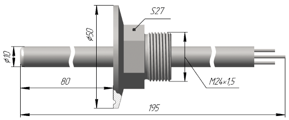 Вставной термометр сопротивления с серебряными присоединительными выводами.